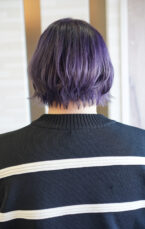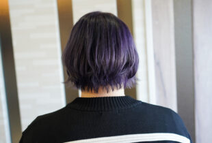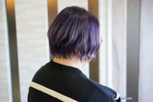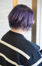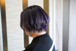 深みのあるパープルカラーで仕上げたショートスタイル。グラデーションで動きを出し、軽やかで洗練された印象を演出します。トリートメントで髪のツヤと柔らかさもキープしています。
