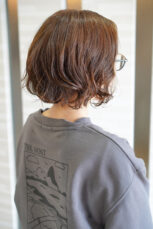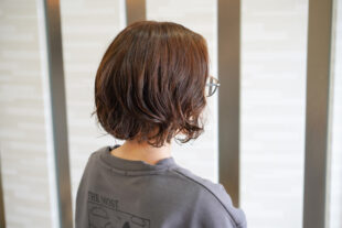 エアウェーブでふんわり動きをつけたボブスタイルに、アッシュベージュをプラスして透明感をアップ。軽やかで柔らかな印象に仕上がります。