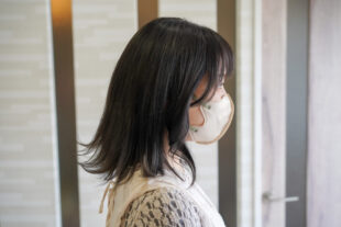 顔まわりの控えめなレイヤーが横顔を繊細に整え、暗髪でも軽やかに見せてくれるデザインです。