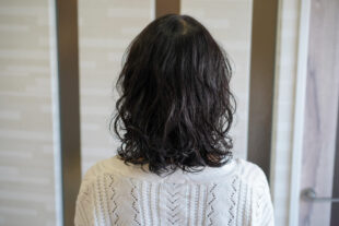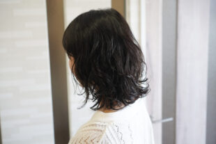スタイリングは、毛先に少し水分を与えてからオイルを揉み込むだけで、レイヤーの動きが際立ち、こなれた印象に仕上がります。パーマの持ちも良く、扱いやすさが魅力です。