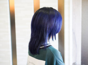 ディープブルー×ウルフレイヤー Deep Blue × Wolf Layer 深みのあるブルーが印象的なウルフレイヤースタイル。顔まわりに軽さを出しながら、毛先に動きをつけることでクールさと抜け感を両立。艶やかに発色する […続きを読む]